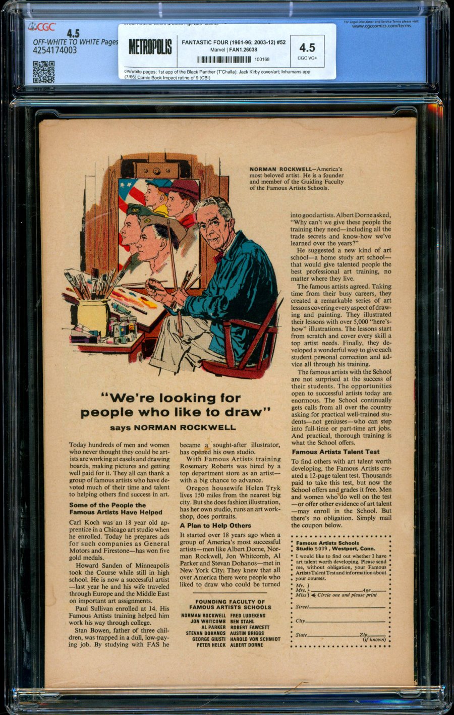 1st appearance of the Black Panther (T'Challa); Jack Kirby cover/art; Inhumans app (7/66) COMIC BOOK IMPACT rating of 9 (CBI)