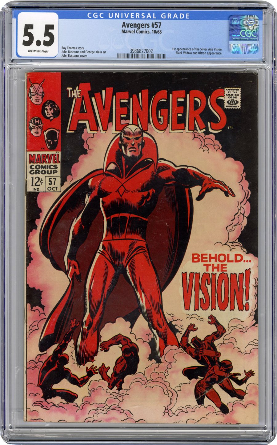 "Behold the Vision!" There's pretty much no better way to sum up the iconic cover of this comic, a book that looms large in the mythology of the Marvel Universe, and served as the inspiration for the international blockbuster film "Avengers: Age of Ultron." The Vision was created in collaboration between Stan Lee and Roy Thomas, who decided to revive the Golden Age character as an android and stick him into the Avengers as a new team member. Thomas claims he was influenced by Adam Link, a robot with humanistic qualities that appeared in Amazing Stories pulp magazines, and not Mr. Spock from Star Trek as many have theorized.