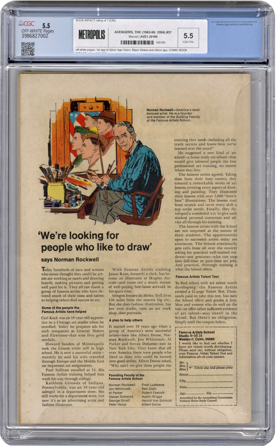 1st app of Silver Age Vision; Black Widow and Ultron app. COMIC BOOK IMPACT rating of 8 (CBI)