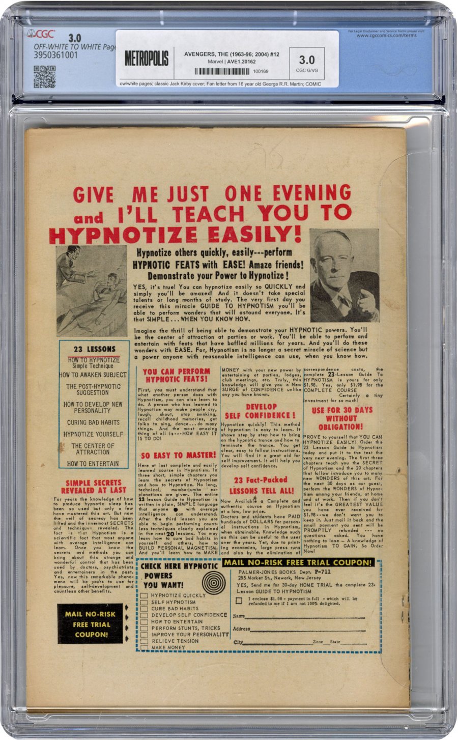 classic Jack Kirby cover; Fan letter from 16 year old George R.R. Martin; COMIC BOOK IMPACT rating of 7 (CBI)Cover pencils by Jack Kirby, inks by Chic Stone. "This Hostage Earth!" script by Stan Lee, pencils by Don Heck, inks by Dick Ayers; Ants warn Giant Man that there is something wrong, but none of the other Avengers believe him; In truth, it is the Mole Man, who plans to destroy the surface world by making the Earth spin very fast on its axis; And now, with his new ally the Red Ghost, how can he be stopped? Avengers Roll Call: Captain America, Thor, Iron Man, Giant Man, Wasp, and Rick Jones. Villains: the Red Ghost, the Mole Man, and the first appearance of Monk Keefer.
