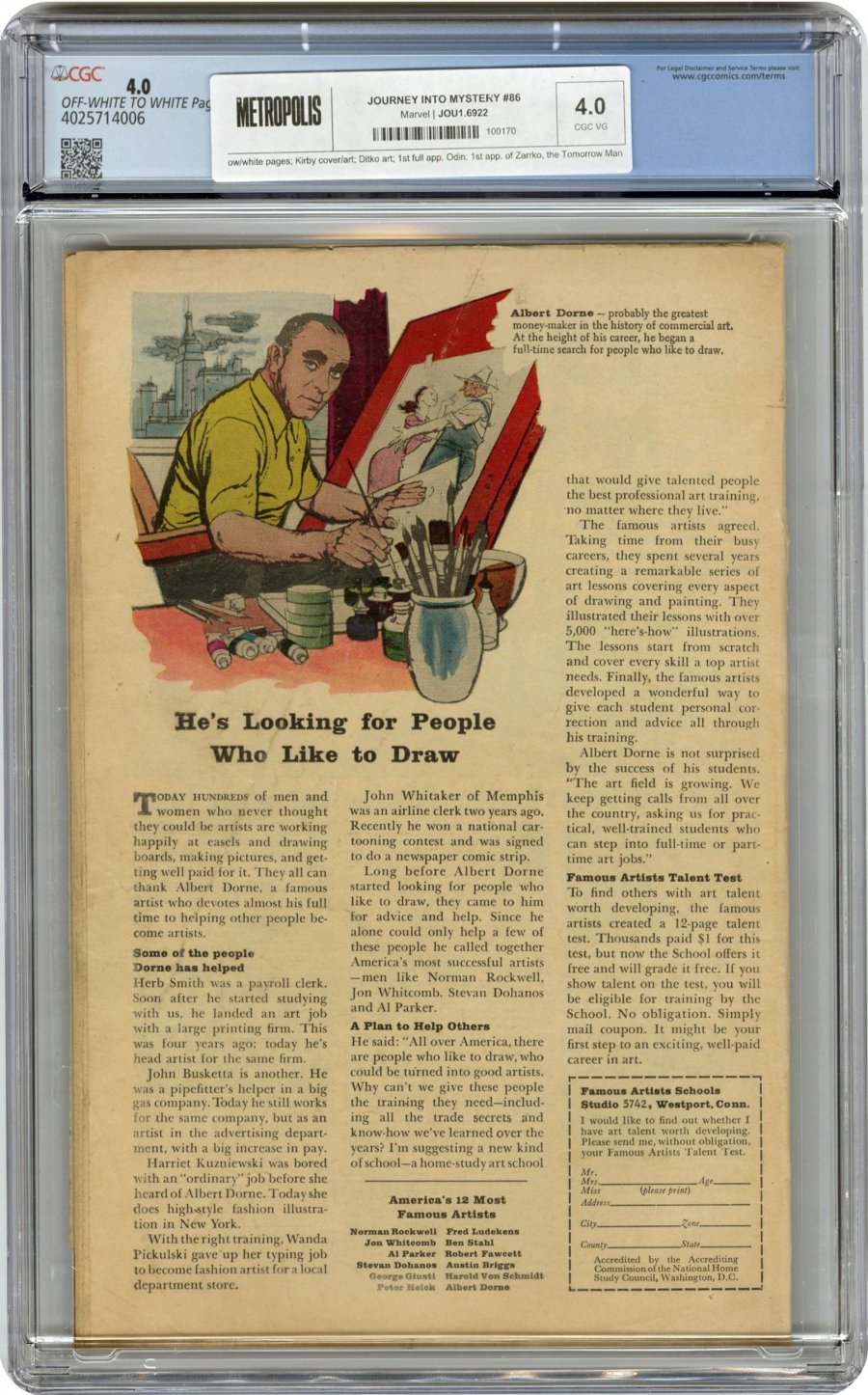 Kirby cover/art; Ditko art; 1st full app. Odin; 1st app. of Zarrko, the Tomorrow Man; COMIC BOOK IMPACT rating of 8 (CBI)