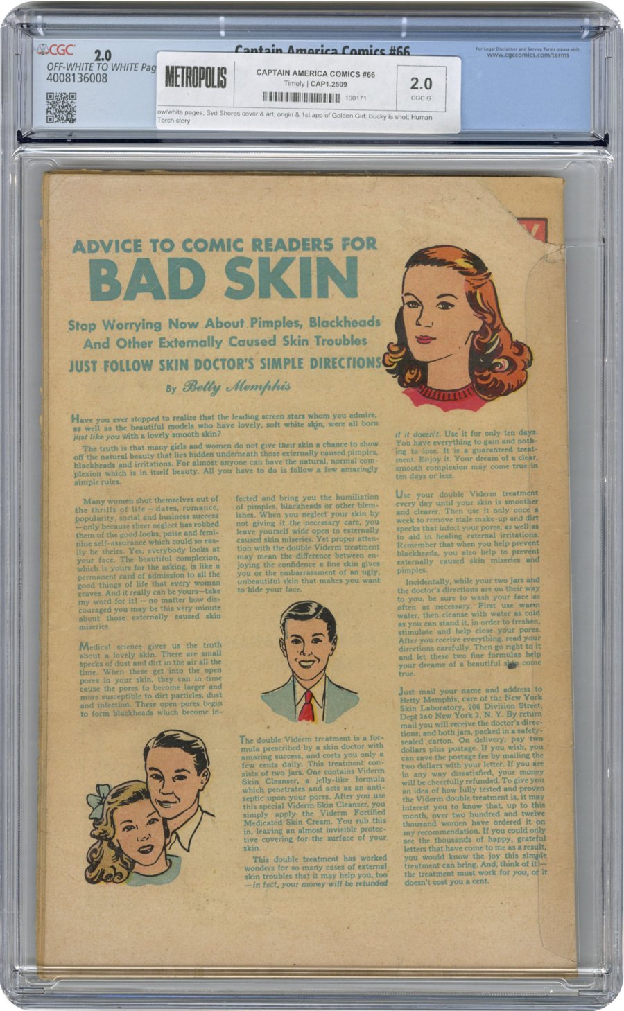 Syd Shores cover & art; origin & 1st app of Golden Girl; Bucky is shot; Human Torch story
