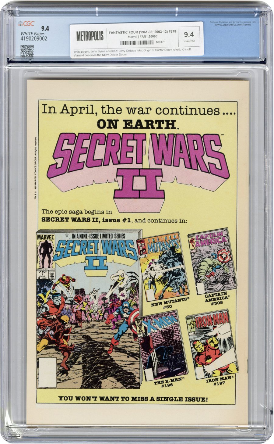John Byrne cover/art; Jerry Ordway inks; Origin of Doctor Doom retold; Kristoff Vernard becomes the NEW Doctor Doom.