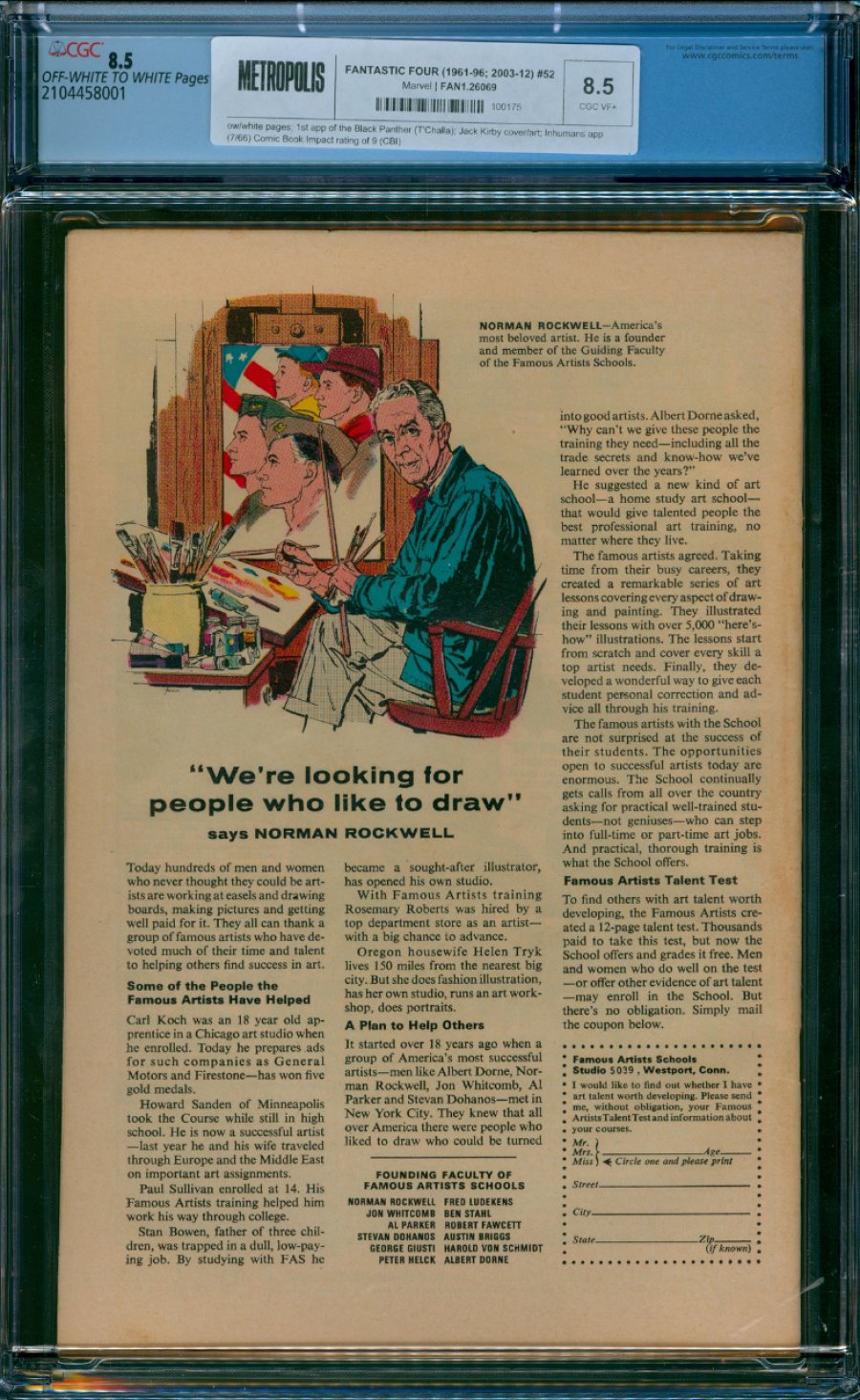1st appearance of the Black Panther (T'Challa); Jack Kirby cover/art; Inhumans app (7/66) COMIC BOOK IMPACT rating of 9 (CBI)