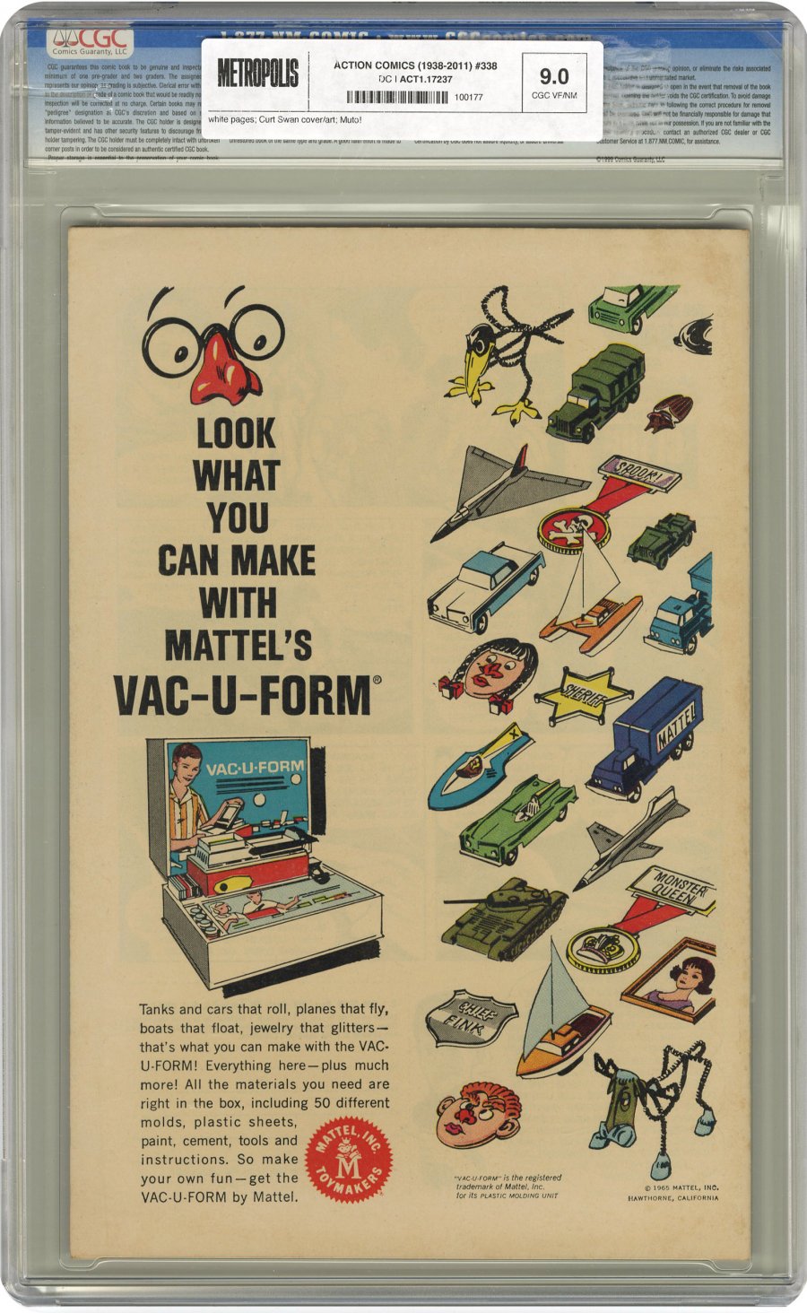 Curt Swan cover/art; Muto!Cover pencils by Curt Swan, inks by George Klein. Sgt. Rock ad. "Muto - Monarch of Menace!", script by Edmond Hamilton, pencils by Curt Swan, inks by George Klein; Superman tracks Muto to sector Z-44, where the villain springs a series of traps on the hero, finally luring him into saving a trio of android children in the path of a wave of paralyzing toxic seawater. Superman ad. "The Villain Who Married Supergirl!", script by Jerry Siegel, art by Jim Mooney; Interplanetary villain Raspor, who claims to have been responsible for the destruction of Krypton, believes that he is fated to marry Supergirl, but she comes up with an elaborate plan to defeat him which includes a fake marriage.