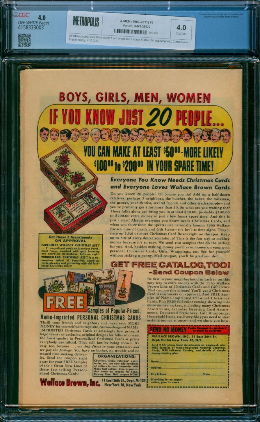 1st appearance of X-Men w/ origin; 1st Magneto; Jack Kirby cover & art; COMIC BOOK IMPACT rating of 10 (CBI)