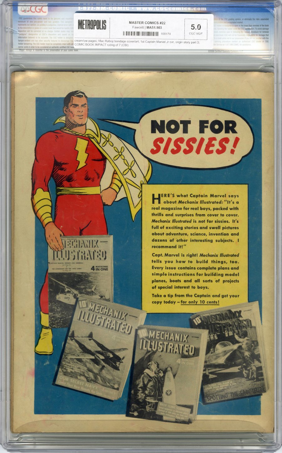 Mac Raboy bondage cover/art; 1st Captain Marvel Jr cvr, origin story part 3; COMIC BOOK IMPACT rating of 7 (CBI)