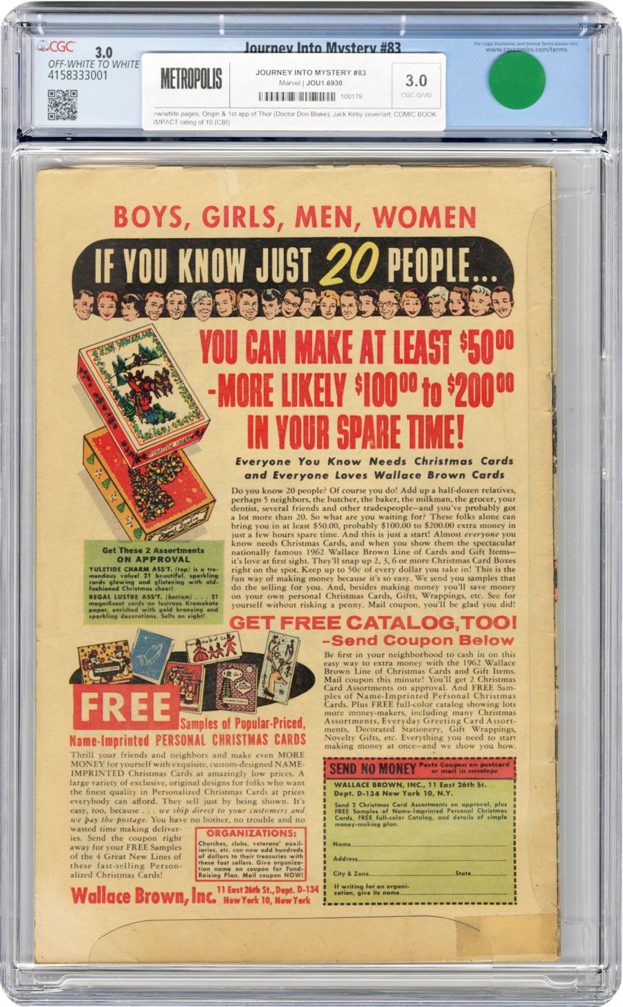 1st appearance of Thor (Dr. Don Blake) w/ origin; Jack Kirby cover/art; COMIC BOOK IMPACT rating of 10 (CBI)
