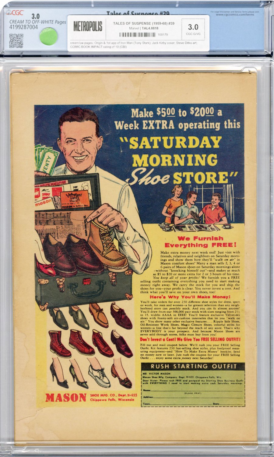1st appearance of Iron Man (Tony Stark) w/ origin; Jack Kirby cover; Steve Ditko art; COMIC BOOK IMPACT rating of 10 (CBI)