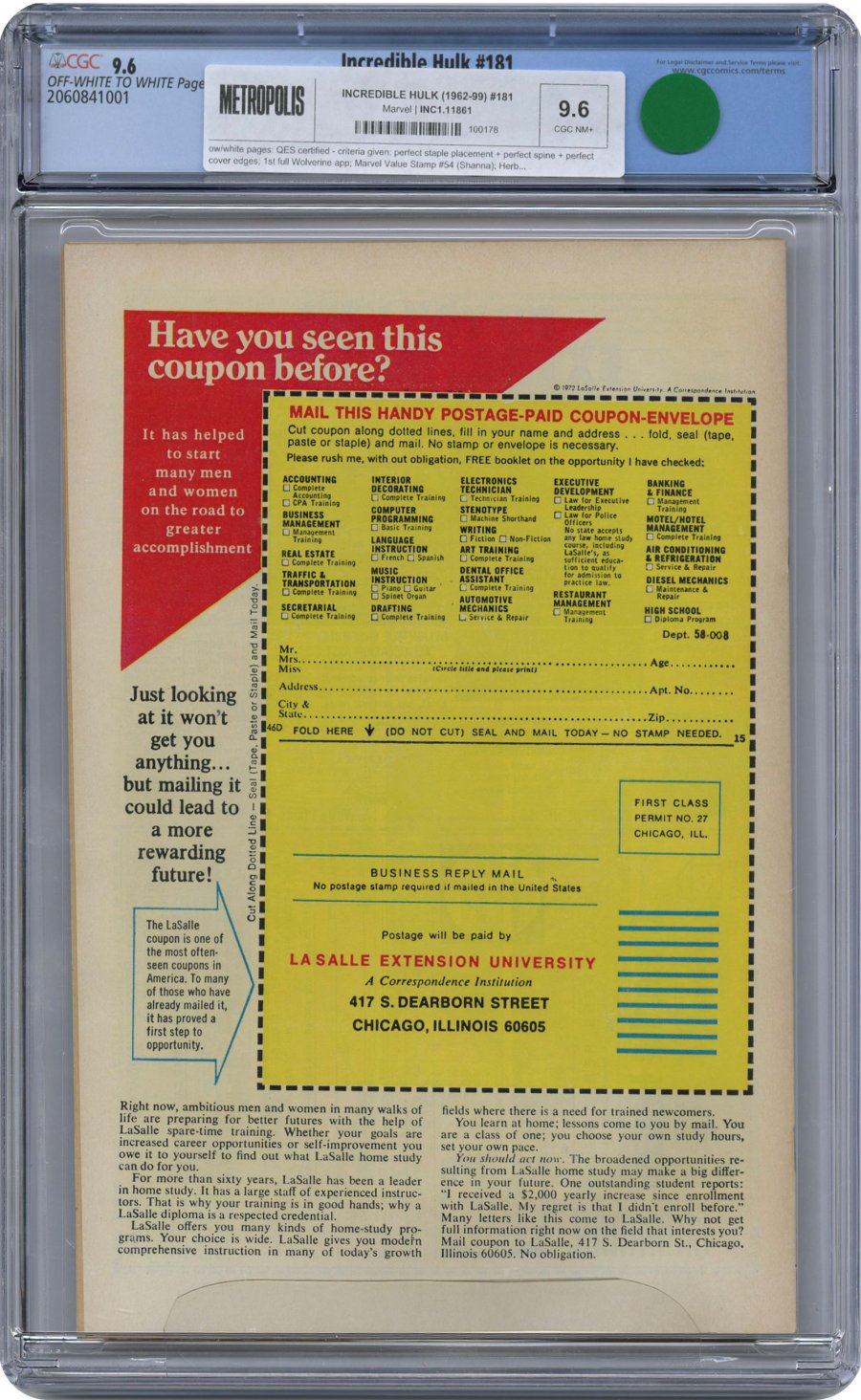 Incredible Hulk #181 became the first Bronze Age book to break the $100,000 sales mark.