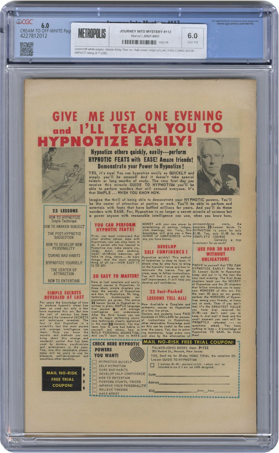 classic Kirby Thor vs. Hulk cover; origin of Loki (1/65) COMIC BOOK IMPACT rating of 7 (CBI)