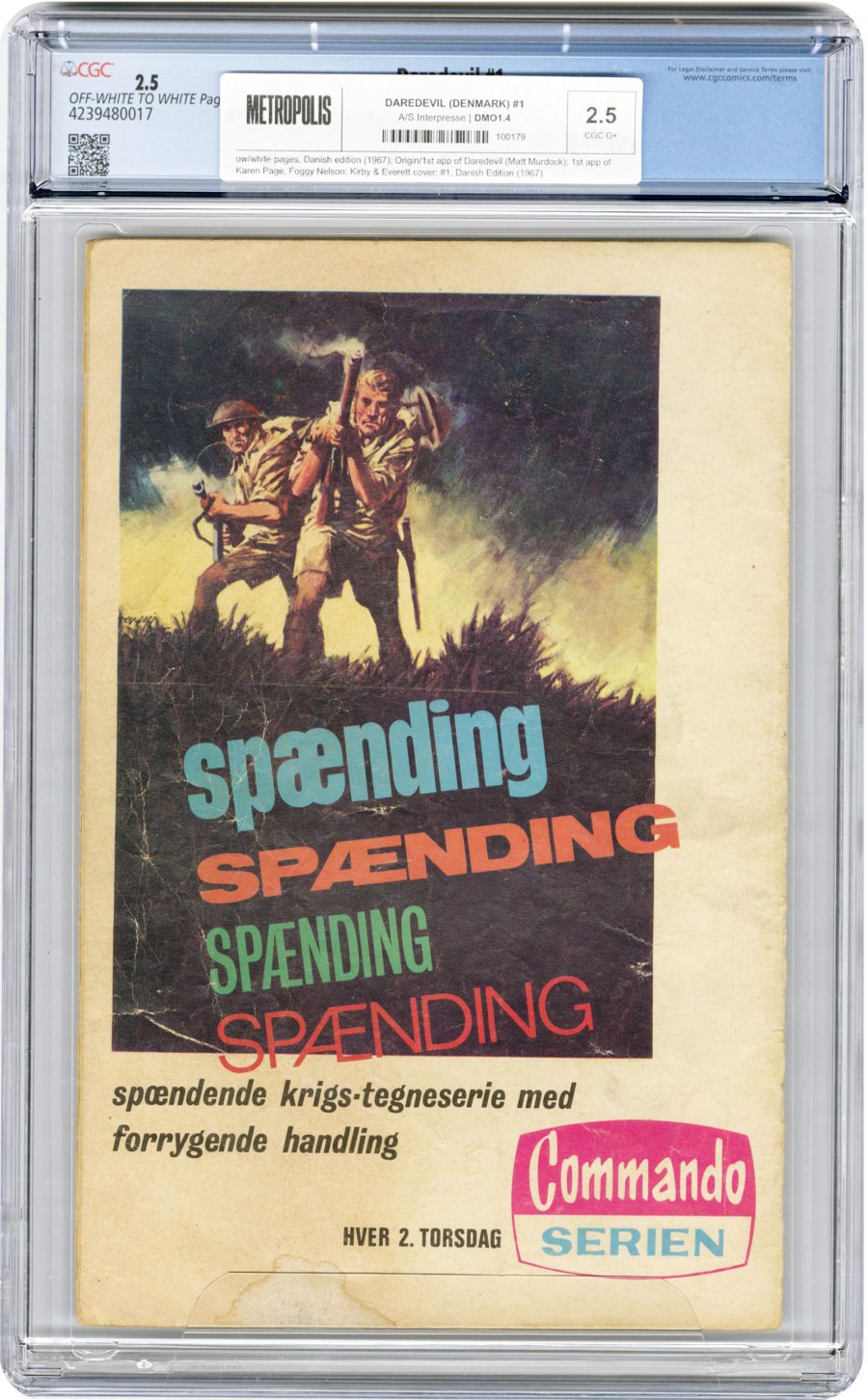 Origin/1st app of Daredevil (Matt Murdock); 1st app of Karen Page, Foggy Nelson; Kirby & Everett cover; #1, Danish Edition (1967)
