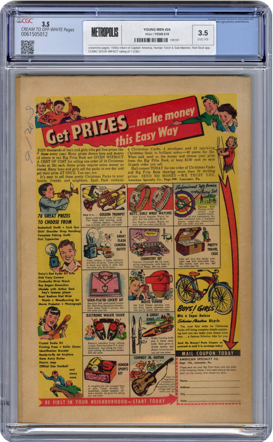 1950s return of Captain America, Human Torch & Sub-Mariner, Red Skull app; COMIC BOOK IMPACT rating of 7 (CBI) '