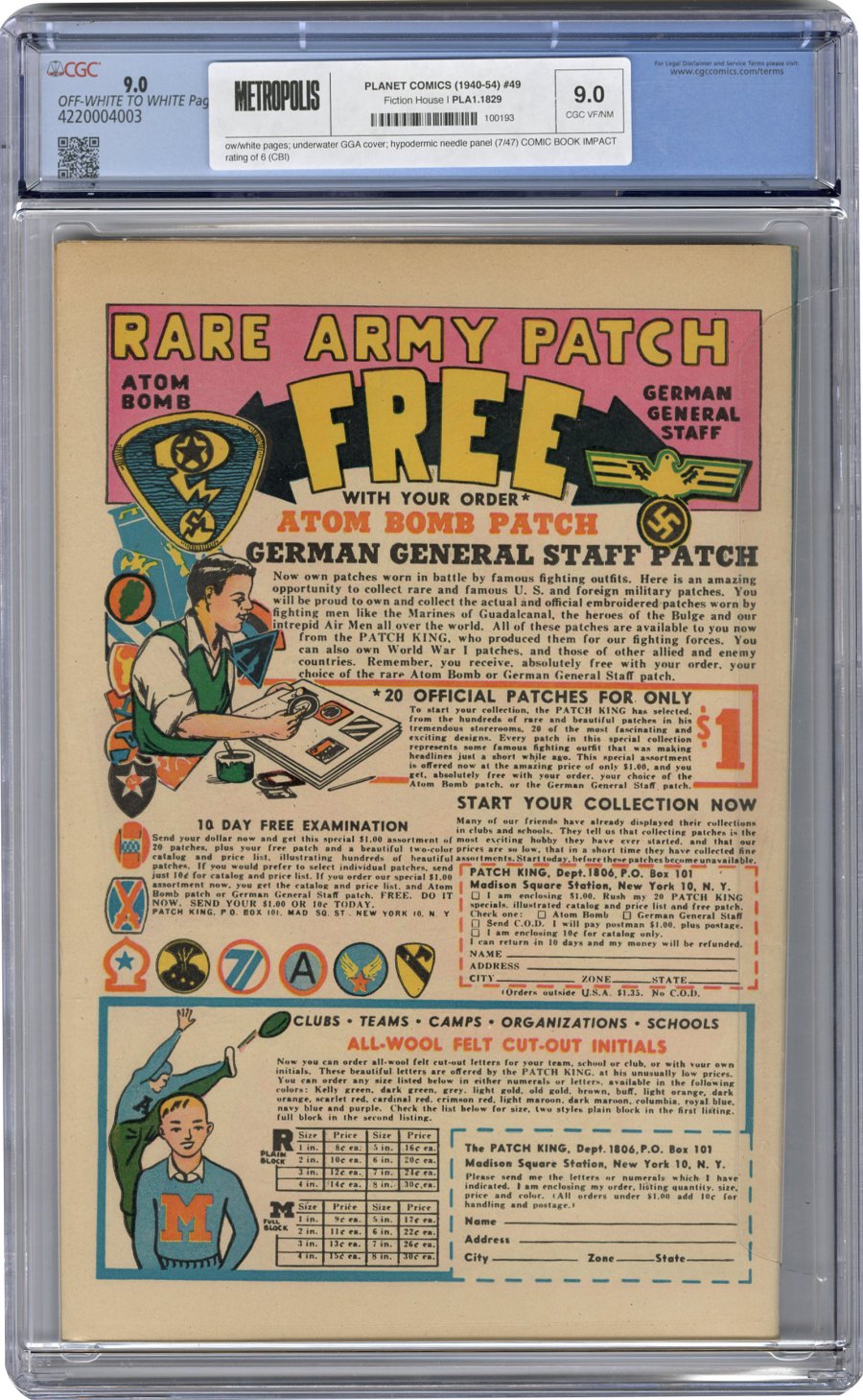 underwater GGA cover; hypodermic needle panel (7/47) COMIC BOOK IMPACT rating of 6 (CBI); Hawkeye copy