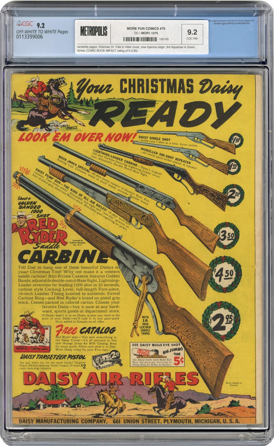 Sherman Dr. Fate & Hitler cover, new Spectre origin; 3rd Aquaman & Green Arrow; COMIC BOOK IMPACT rating of 6 (CBI)