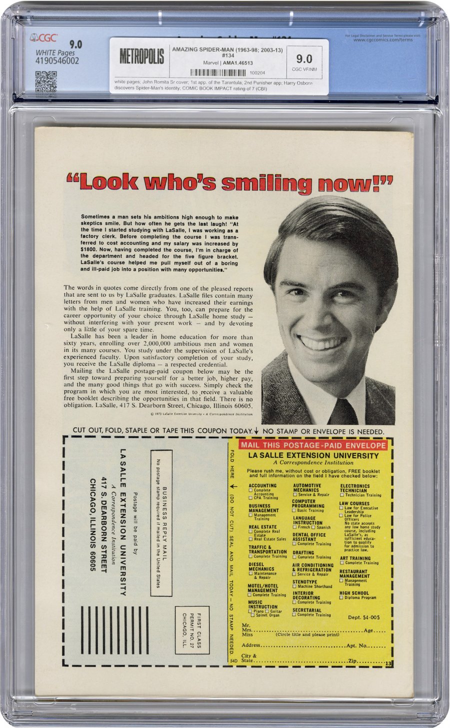 John Romita Sr cover; 1st app. of the Tarantula; 2nd Punisher app; Harry Osborn discovers Spider-Man's identity; COMIC BOOK IMPACT rating of 7 (CBI)