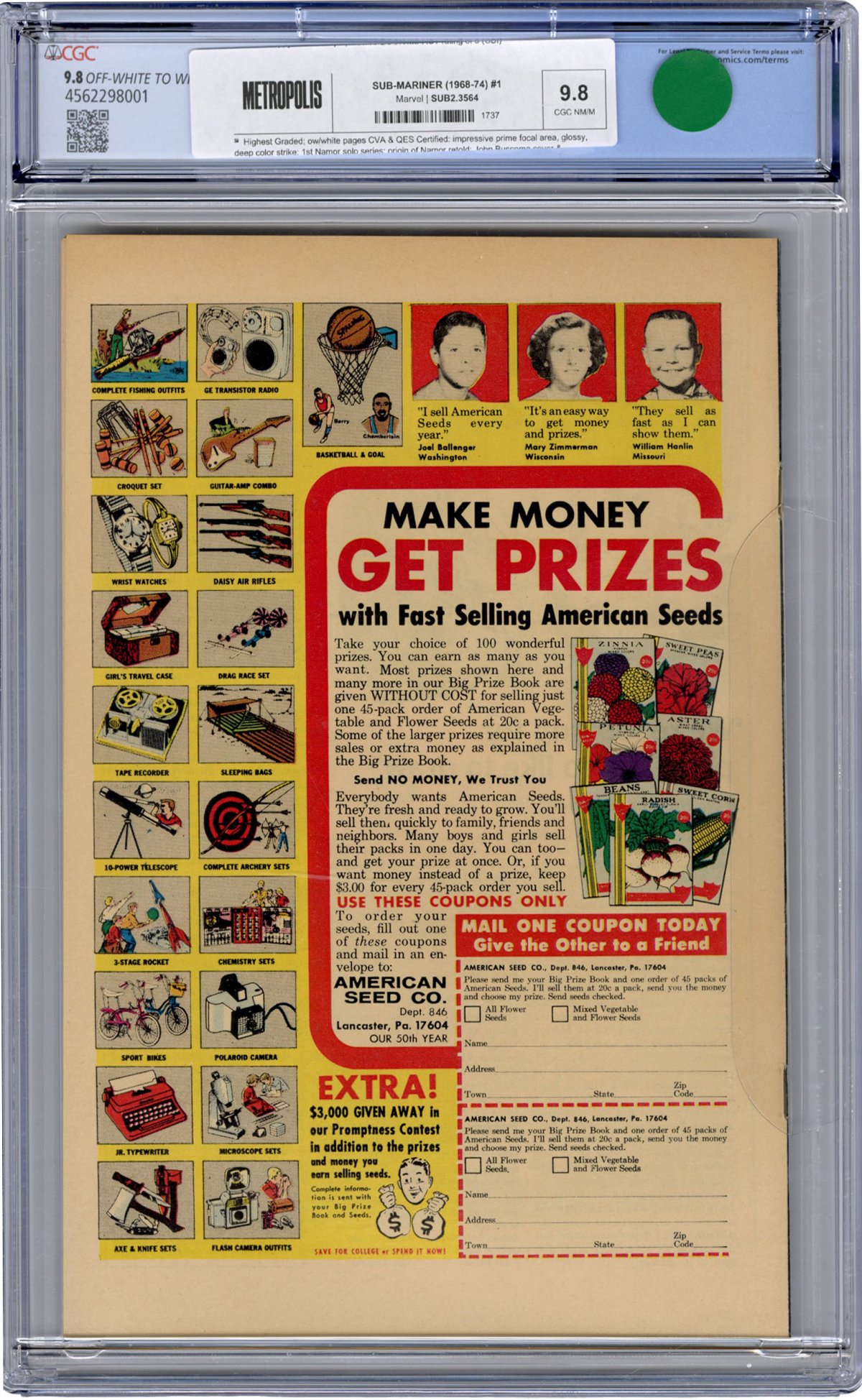 As part of the Silver Age revival, the always ill-tempered Namor was brought back in the pages of the Fantastic Four's top-selling title. Namor was soon headlining his own book with a premiere issue looking back at his long history. Written by Roy Thomas and illustrated by John Buscema and Frank Giacoia, Subby’s Silver Age series would run for 72 issues. Namor would also become a favorite character across the Marvel universe, and continues to be one of the most valued characters of both fans and investors.