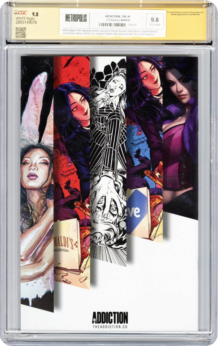white pages; CGC Signature Series: signed by Vincent Zurzolo, David Quinn, Claudia Balboni and Andrew Wilson; NYCC Lau "Artgerm" Edition; Manufactured with "603 of 633" printed on cover