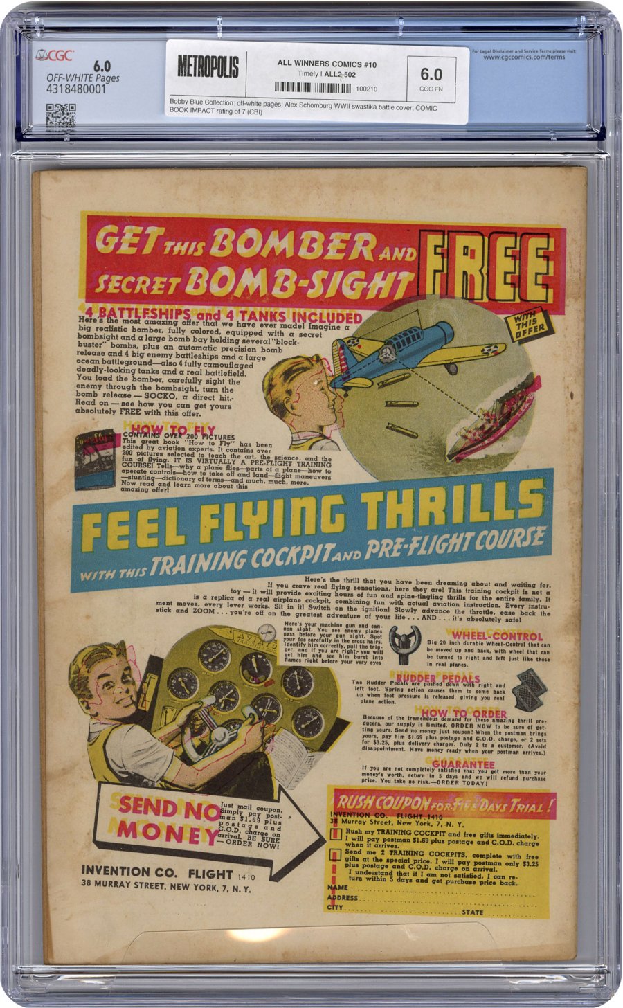 Alex Schomburg WWII swastika battle cover; COMIC BOOK IMPACT rating of 7 (CBI)