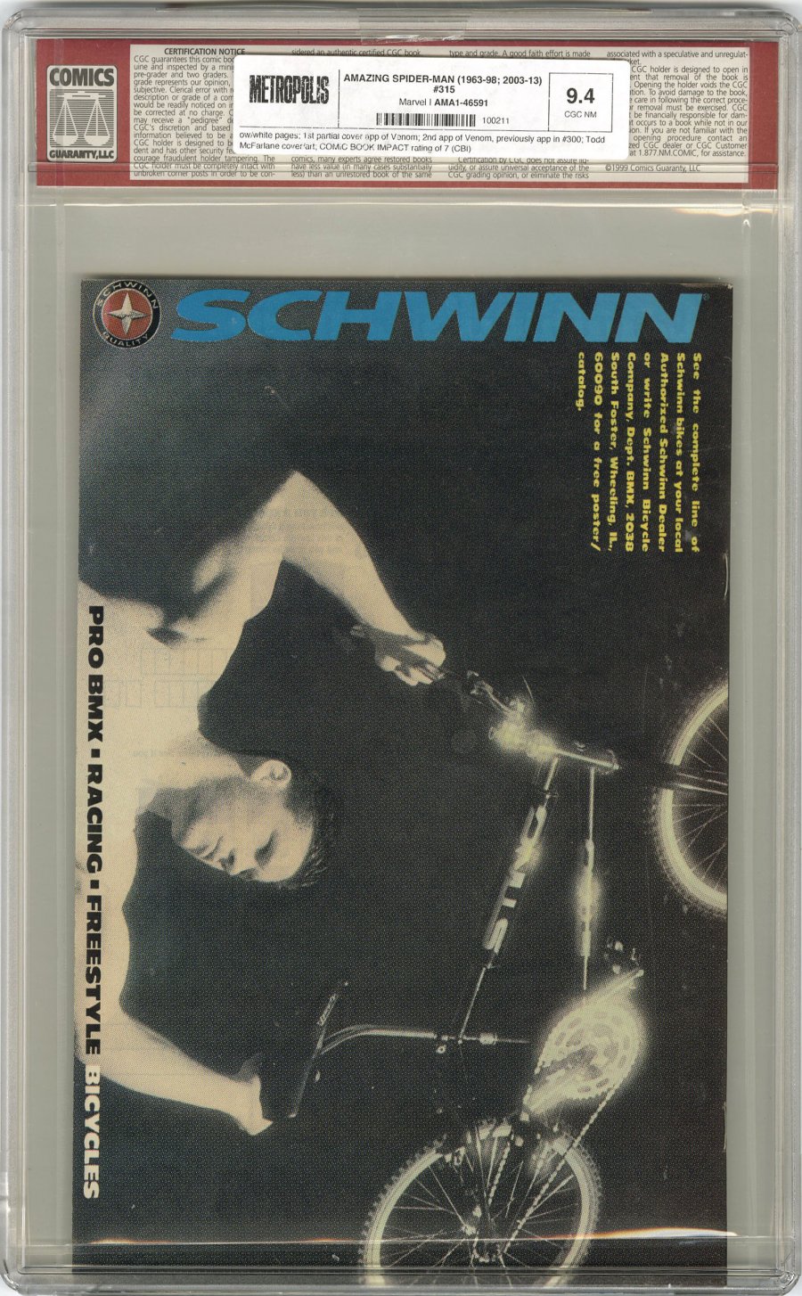 1st partial cover app of Venom; 2nd app of Venom, previously app in #300; McFarlane cover/art; COMIC BOOK IMPACT rating of 7 (CBI)