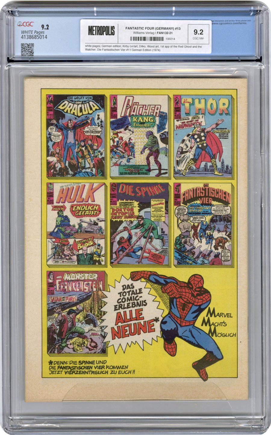 Kirby cvr/art, Ditko, Wood art; 1st app of the Red Ghost and the Watcher; Die Fantastischen Vier #11 German Edition (1974)contains Fantastic Four #13 and Daredevil #6 stories