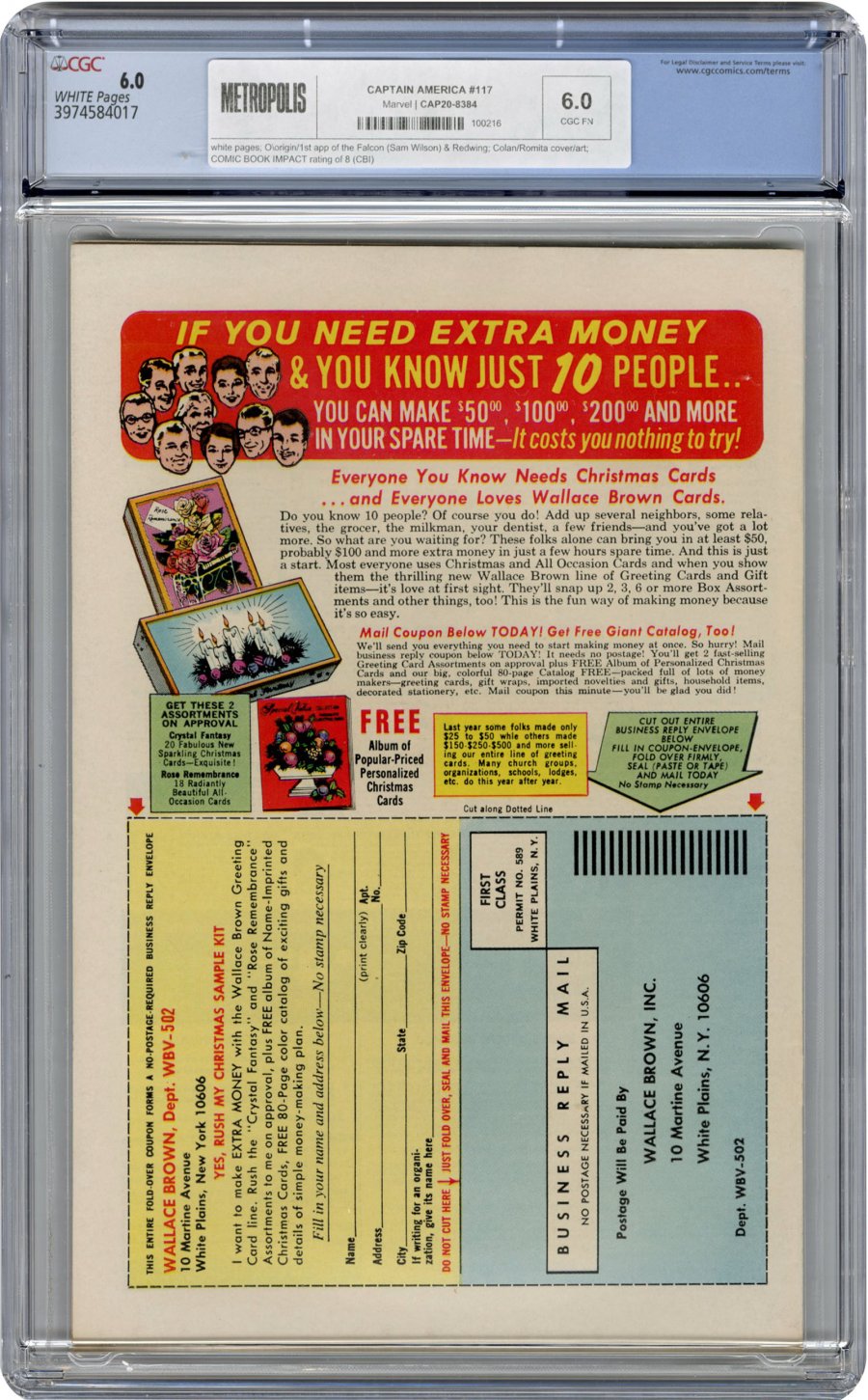 UNDERVALUED KEY ALERT; Origin/1st app of the Falcon (Sam Wilson) & Redwing; Colan/Romita cover/art; COMIC BOOK IMPACT rating of 8 (CBI)Marvel had always been at the forefront of American popular culture, daring to stake out territory otherwise considered taboo or too controversial, as when Stan Lee published a pair of Spider-Man issues without the comics code stamp due to anti-drug imagery. The Black Panther had already broken down barriers as the first Black superhero appearing in a mainstream title, and there had been characters of color in comics previously, of course, but they had either been wince-inducing caricatures, or punted off into "racial" titles meant solely for an inner-city readership segregated from the mainstream. But, by the late 1960s, audiences were ready for a change, and Lee, along with the supremely gifted Gene Colan, developed a character designed to stand on his own as an urban Black hero, sans gimmicks, and paired him with the personification of America itself, Captain America. The result was this instant success, an acknowledged breakthrough in hero comics, which introduced the Falcon, a tough and determined former social worker (though this was later retconned) who proves a formidable ally for our titular hero.