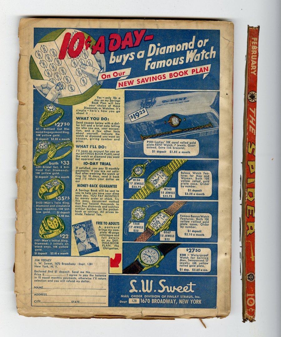 Feb. 1942; 'Murder's Legoinnaires' Spider novel by Norvell W. Page (as Grant Stockbridge); 'The Dolls from Hell' Doc Turner story by Arthur Leo Zagat