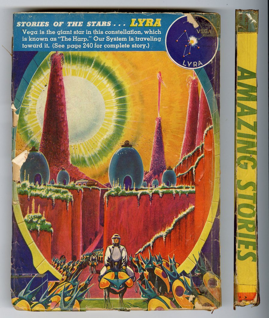 April, 1943. Giant Size Issue. Cover by Robert Fuqua. Stories by Nelson S. Bond, Robert Bloch, A.R. McKenzie, Leroy Yerxa, Chester S. Geier, Russell Storm, Lee Francis, and David Wright O'Brien. Illustrations by H.R. Hammond, H.W. McCauley, Magarian, Fran