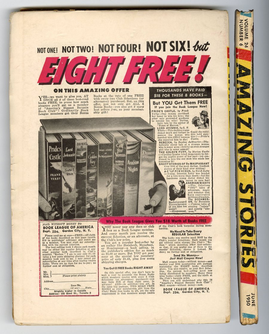 June 1950. Cover by Robert Gibson Jones. SF stories by Craig Browning "Goddess of the Volcano", Robert Moore Williams, August Derleth, Alfred Coppel, P.F. Costello, Rog Phillips, Frances M. Deegan, Peter Worth, Robert Abernathy, and Gerald Vance.