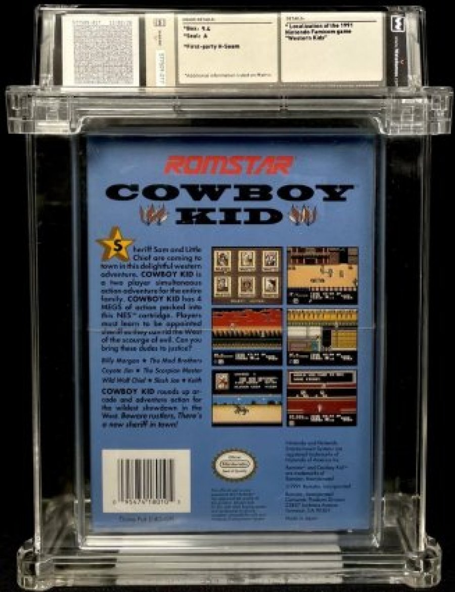 Released in Japan as "Western Kids"Sheriff Sam and Little Chief are coming to town in this delightful western adventure. COWBOY KID is a two-player simultaneous action-adventure for the entire family. Cowboy Kid has 4 MEGS of action packed into this NES cartridge. Players must learn to be appointed sheriff so they can rid the West of the scourge of evil. Can you bring these dudes to justice? Cowboy Kid rounds up arcade and adventure action for the wildest showdown in the West. Beware, rustlers! There's a new sheriff in town!