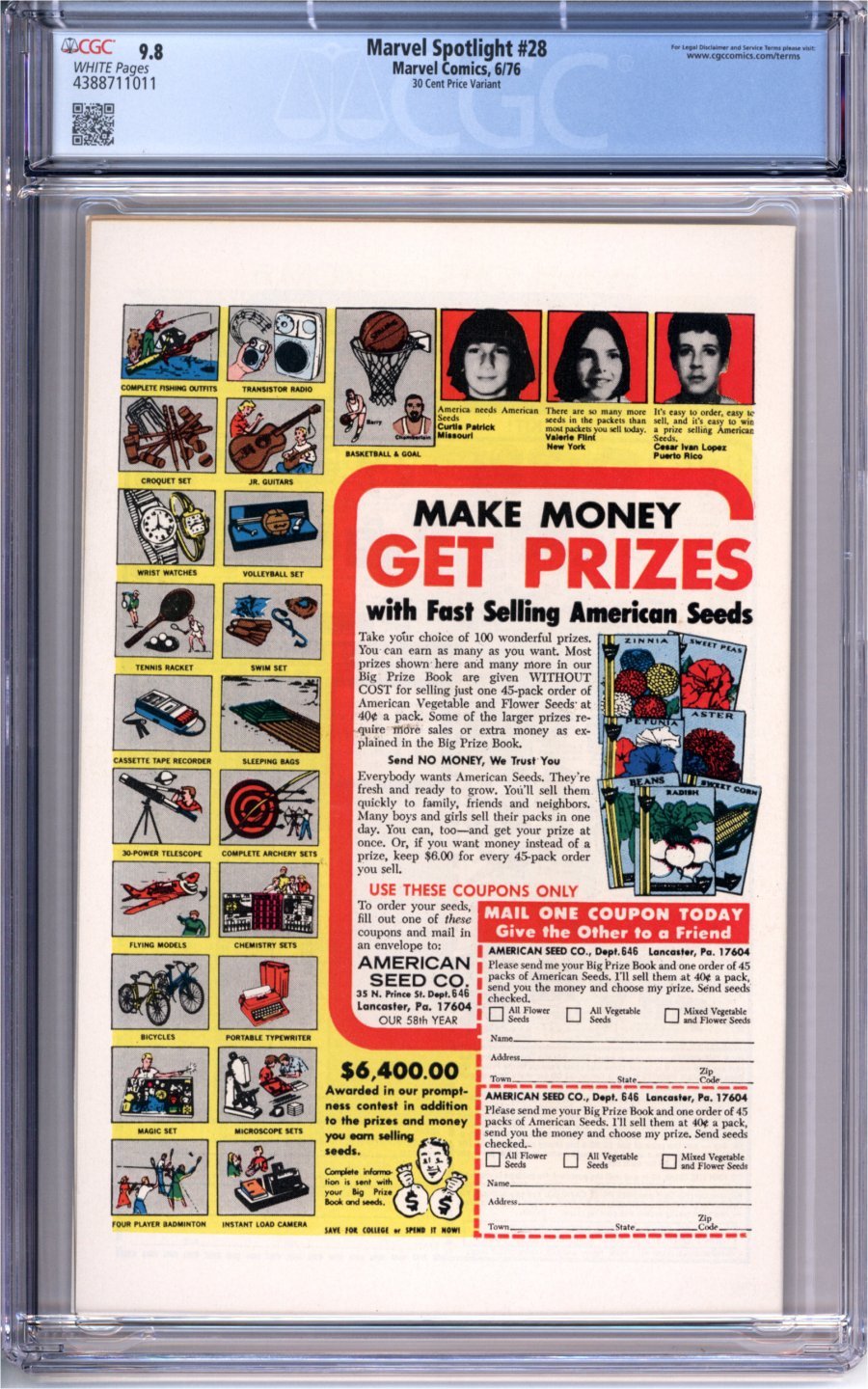 COMMENTS: White pgs; Census Rank 1 Highest Graded; Universal holder; Unrestored; CGC#4388711011 30 cent price variant