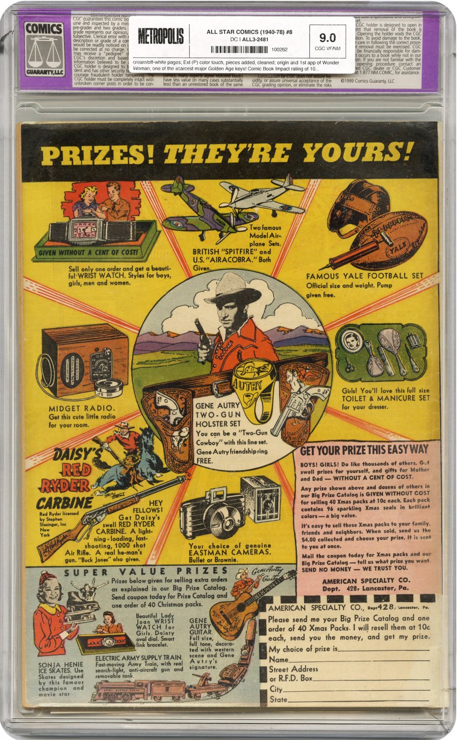 1st appearance of Wonder Woman w/ origin; one of the scarcest major Golden Age keys! COMIC BOOK IMPACT rating of 10 (CBI)