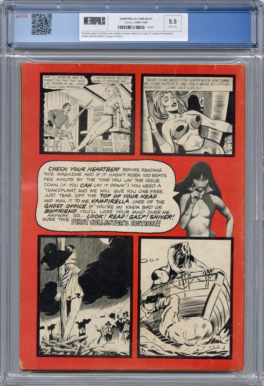 Frazetta cover, classic Crandall, Adams art; origin & 1st app of Vampirella; COMIC BOOK IMPACT rating of 8 (CBI)