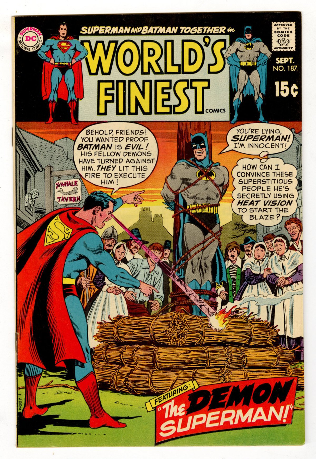Batman burned at the stake/bondage cover; COMIC BOOK IMPACT rating of 5 (CBI)