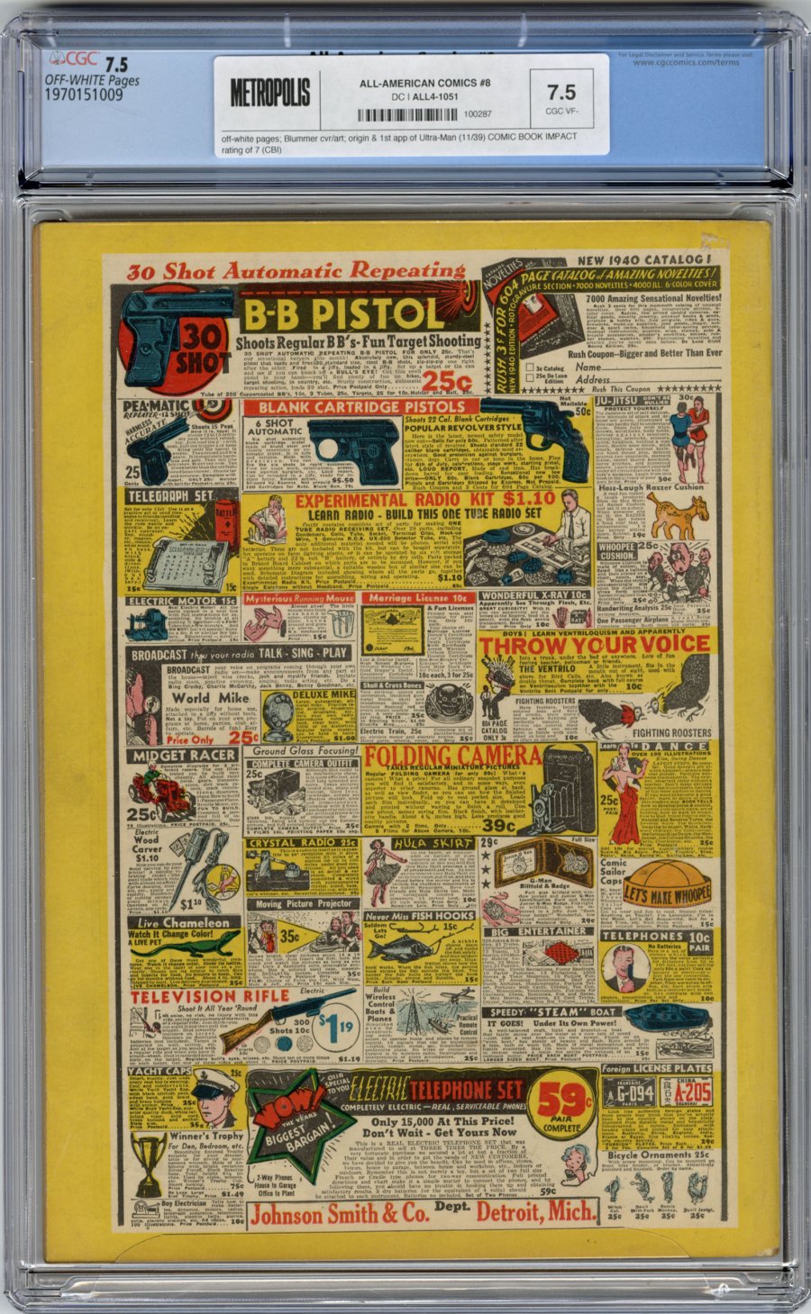 Blummer cvr/art; origin & 1st app of Ultra-Man (11/39) COMIC BOOK IMPACT rating of 7 (CBI)interior cover ad for Mutt & Jeff #1