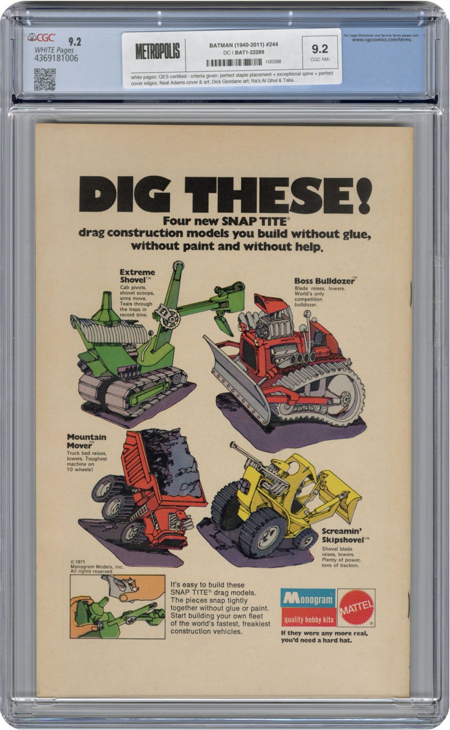Neal Adams cover & art; Dick Giordano art; Ra's Al Ghul & Talia app; COMIC BOOK IMPACT rating of 7 (CBI)Ra's Al Ghul is back, and with a vengeance. Can Batman defeat the Demon in a one-on-one duel to the death? "The Demon Lives Again!" Talia appearance. Script by Denny O'Neil, pencils by Neal Adams, inks by Dick Giordano. Robin stars in the solo adventure "Teen-Age Trap!" Script by Elliot Maggin, pencils by Irv Novick, inks by Giordano.