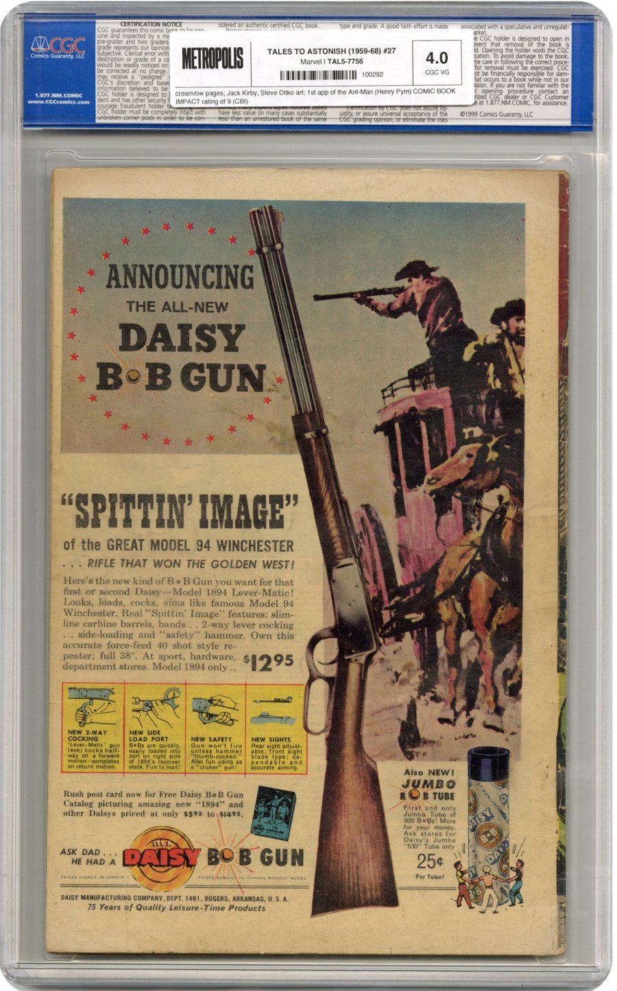 Tales to Astonish #27 has Stan Lee and Jack Kirby once again drawing upon the monster movies of the 1950s as they feature the first appearance of Henry Pym in the Marvel Universe. In this intro, however, Pym's just an endangered genius in a story inspired by the big-screen sci-fi classic The Incredible Shrinking Man. A repentant Pym even dumps his shrinking serum down the drain at the end of "The Man in the Ant Hill!" Ant-Man wouldn’t acquire his iconic costume or proper origin until issue #35, but readers loved him all the same. This book has always been a favorite among collectors, but saw an explosion in demand and value over the past few years as Ant-Man became a popular player in the Marvel Cinematic Universe.