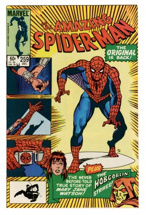 COMMENTS: returns to old costume; full Hobgoblin app. (12/84) COMIC BOOK IMPACT rating of 6 (CBI)