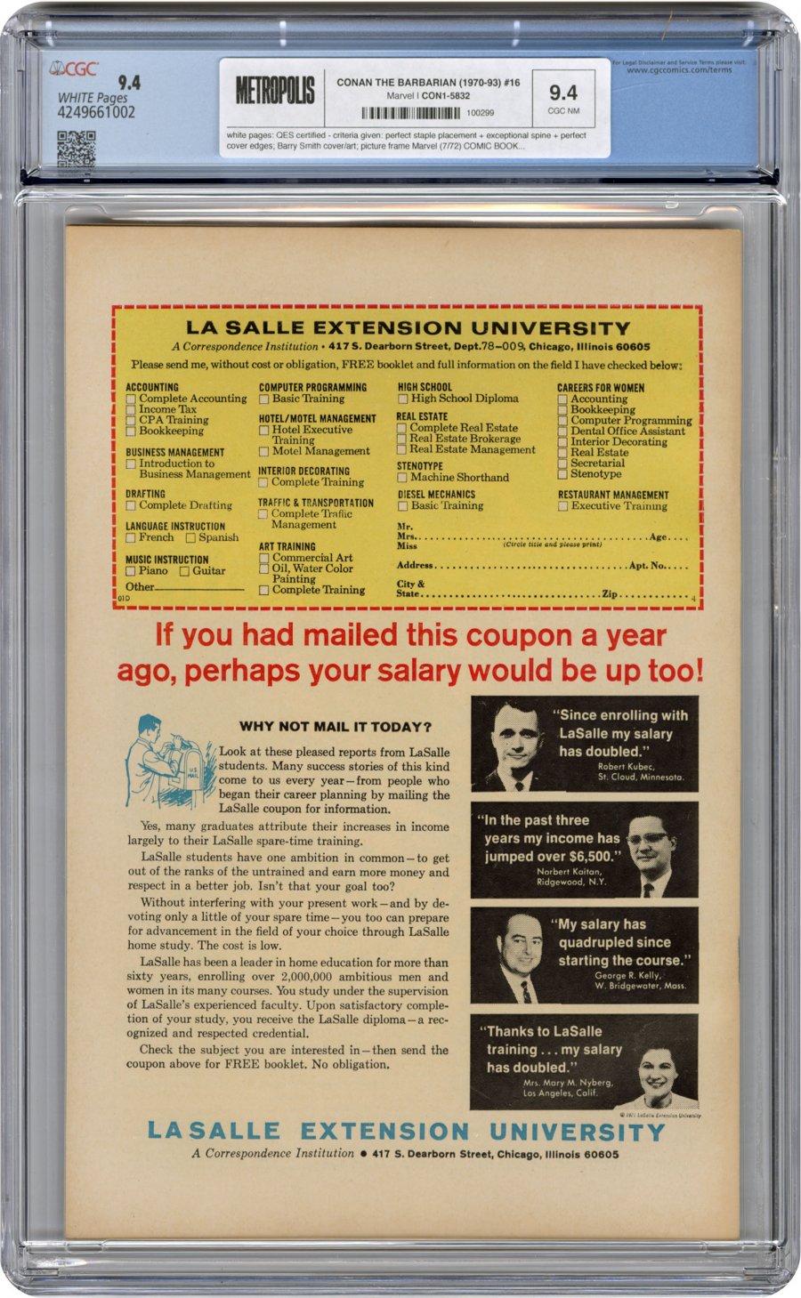 Barry Smith picture frame Marvel; early Conan issues are undervalued - buy em now (7/72) COMIC BOOK IMPACT rating of 6 (CBI)