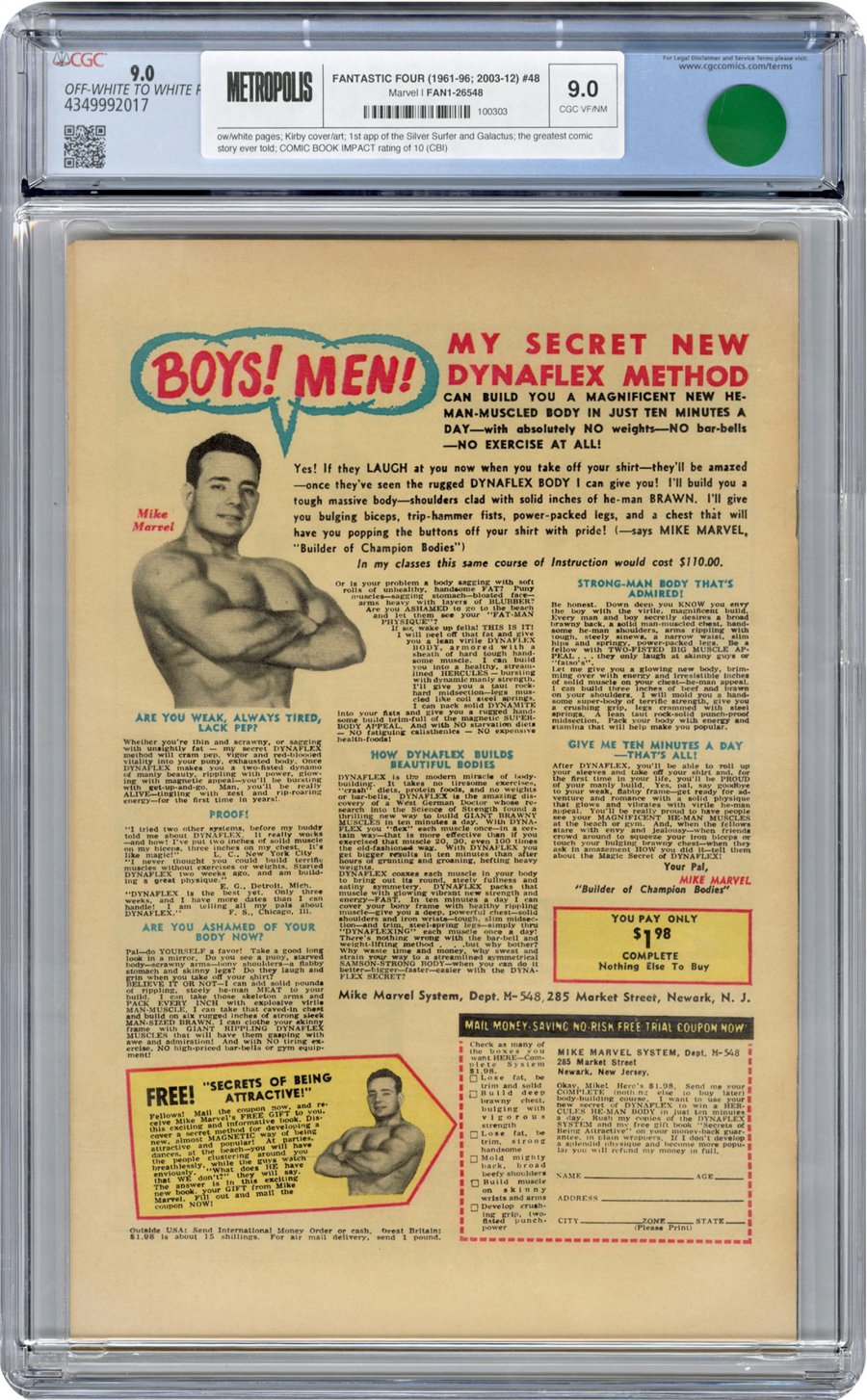 Fantastic Four #48 launched the legacies of two enduring Marvel legends, introducing the Silver Surfer as the herald of Galactus, Devourer of Worlds — who shows up at the end with his own first appearance. The result is a highly collectible classic comic that launches an arc of what fans and collectors both celebrate as "the Greatest Comics Story Ever Told." This timeless tale from Stan Lee and Jack Kirby is one of the true classics that elevated the Fantastic Four into one of the comic industry's most ambitious titles. Marvel Studios' revival of the big-screen FF has been one of the most hotly anticipated projects in the history of superhero films, with Fantastic Four: First Steps adapting this tale for the team's return to the official Marvel Movie family.