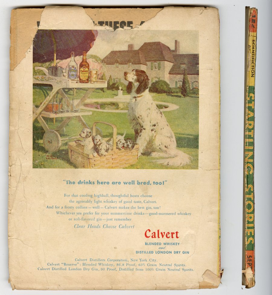Sept 1947. Cover by Earle K. Bergey. Stories by Keith Hammond, Stanley G. Weinbaum, Carl Jacobi, and Ray Cummings. Five Virgil Finlay illustrations. 6.75-in. x 9.75-in.; black and white; 112 pages. Cover price $0.15.