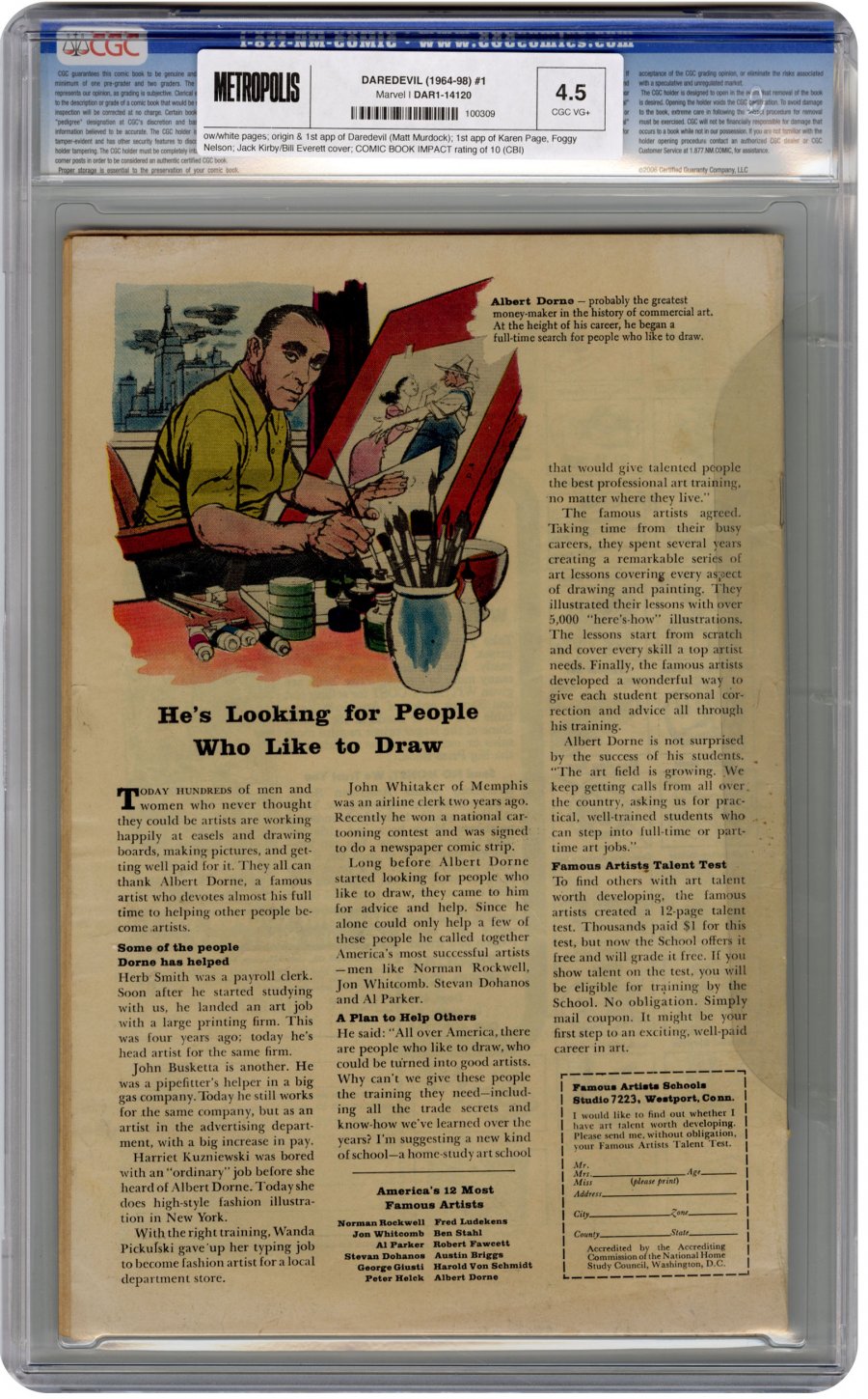 1st appearance of Daredevil (Matt Murdock) w/ origin; 1st app of Karen Page, Foggy Nelson; Jack Kirby/Bill Everett cover; COMIC BOOK IMPACT rating of 10 (CBI)
