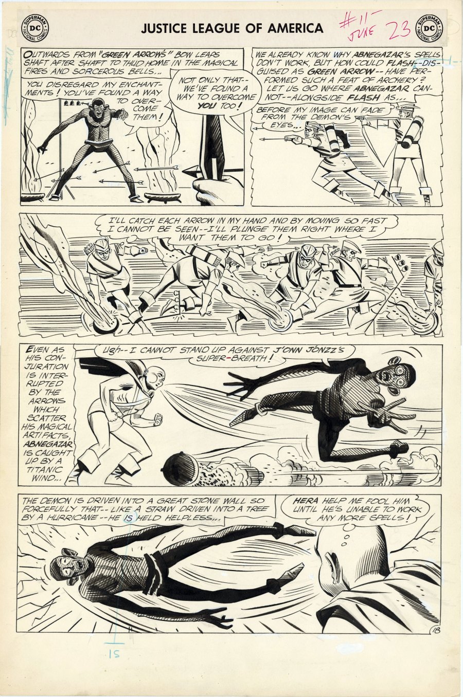 Mike Sekowsky pencils/Bernard Sachs inks; page 18; 1962; image size 13" x 18"Pen and ink. Art is in excellent condition.