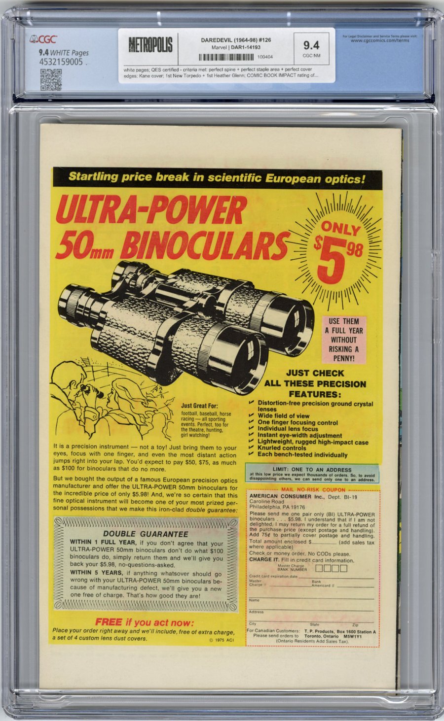 Kane cover; 1st New Torpedo + 1st Heather Glenn; COMIC BOOK IMPACT rating of 6 (CBI)