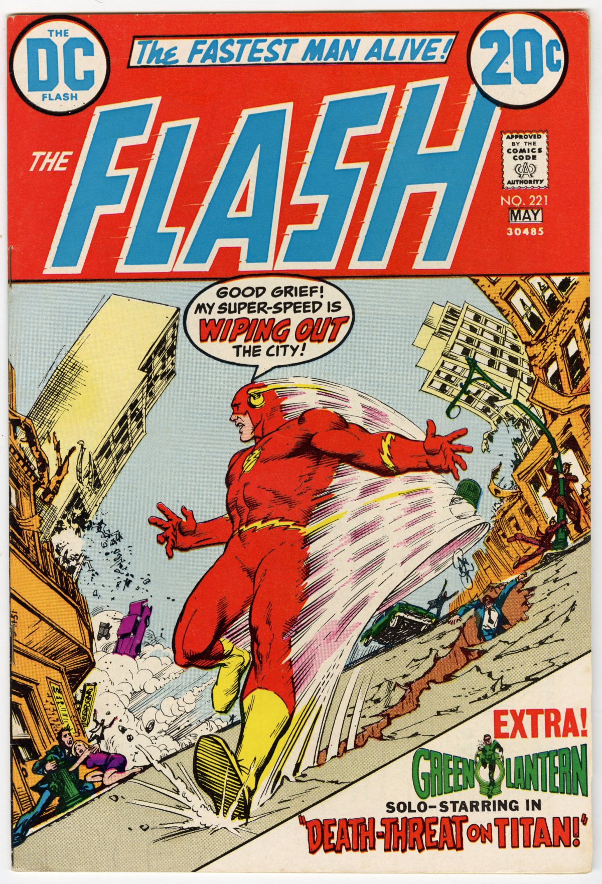 Nick Cardy cover; Kid Flash/Elongated Man app; COMIC BOOK IMPACT rating of 5 (CBI)Cover art by Nick Cardy. Time-Schedule For Disaster!, script by Cary Bates and John Warner [as J. David Warner], pencils by Irv Novick, inks by Frank McLaughlin; Barry attempts to be on time for every appointment of his day, including the bank, the fairgrounds, and the community chest drive, only to find that had he been late things would have worked out better. Death-Threat on Titan!, script by Denny O'Neil, art by Dick Giordano; Green Lantern travels to Titan to unravel the mystery of an alien found dead in the desert.