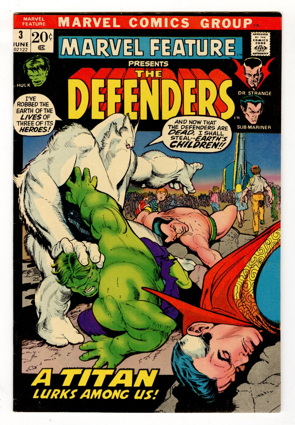 3rd app. Defenders (Disney+ series; Andru/Everett artCover pencils by Gil Kane, inks by Ralph Reese. "A Titan Walks Among Us!", script by Roy Thomas, pencils by Ross Andru, inks by Bill Everett; Alien conqueror Xemnu uses his mental powers, broadcast through a kids' television show, to try and enslave mankind; The combined forces of the Defenders must rise to stop him. Xemnu the Titan previously appeared in Monsters on the Prowl (Marvel, 1971 series) #11 and #14, reprints of Journey Into Mystery (Marvel, 1952 series) #62 and #66.