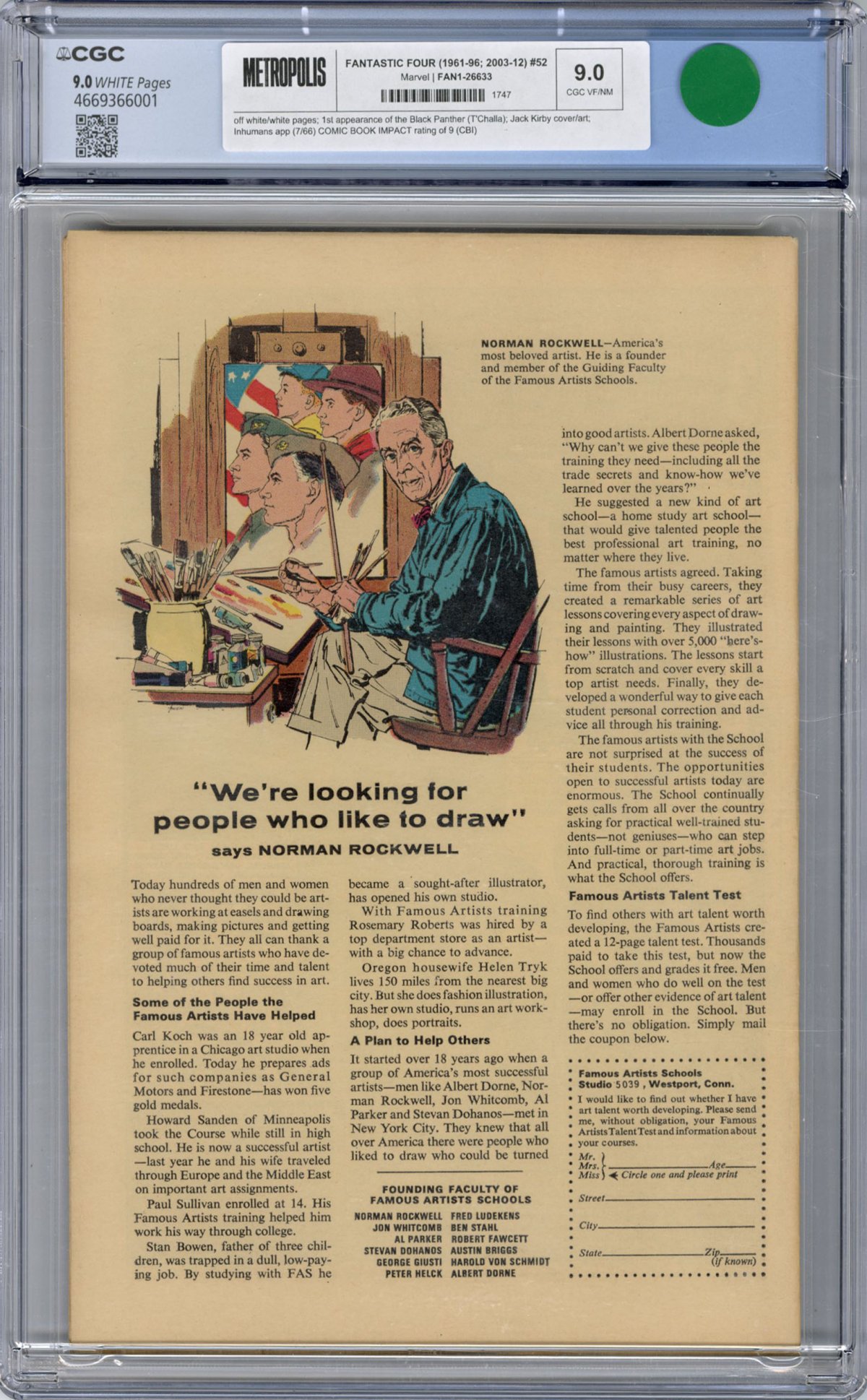 1st appearance of the Black Panther (T'Challa); Jack Kirby cover/art; Inhumans app (7/66) COMIC BOOK IMPACT rating of 9 (CBI)