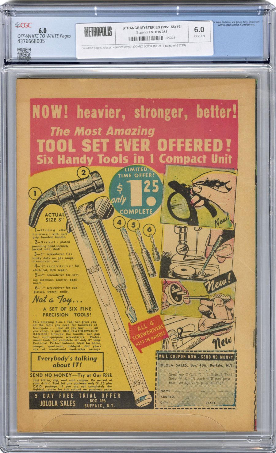 classic vampire cover; COMIC BOOK IMPACT rating of 6 (CBI)
