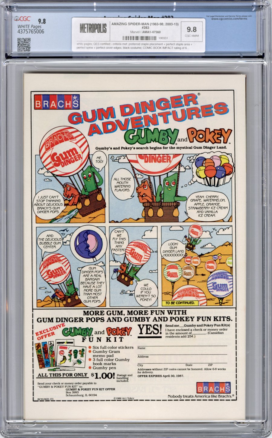 black costume; COMIC BOOK IMPACT rating of 6 (CBI)Avengers Under Siege: Part 5 of 8 -- "With Foes Like These" Script by Tom DeFalco. Pencils by Ron Frenz. Inks by Bob Layton. Cover by Bob Layton. Plot continues from Avengers 274. While searching for Flash Thompson, the web-slinger runs into Titania robbing a jewelry store! What brings the powerful super-villainess to Manhattan? Her new job: working for the Masters of Evil...and destroying the Avengers! But if Titania is in town, her boyfriend can't be far behind! When the wall-crawler tracks Titania to LaGuardia Airport, his clash with the titans begins! The Amazing Spider-Man vs. Titania and the Absorbing Man! In a few minutes, ol Spidey may wish he had called the Avengers instead! Plot continues in Avengers 275. First appearance of Mongoose. Cameo appearances by the Hobgoblin, Roderick Kingsley, Mary Jane Watson, Flash Thompson, Betty Leeds, and the Wasp. Flashback cameo by Doctor Doom. (Notes: This issue completes Tom DeFalcos (writer) and Ron Frenz (penciler) wonderful 3-year run on the Amazing Spider-Man title -- highlighted by the alien symbiote (black costume) storyline, the advancement of the Hobgoblin saga, and the creation of the Rose, Puma, and Silver Sable.