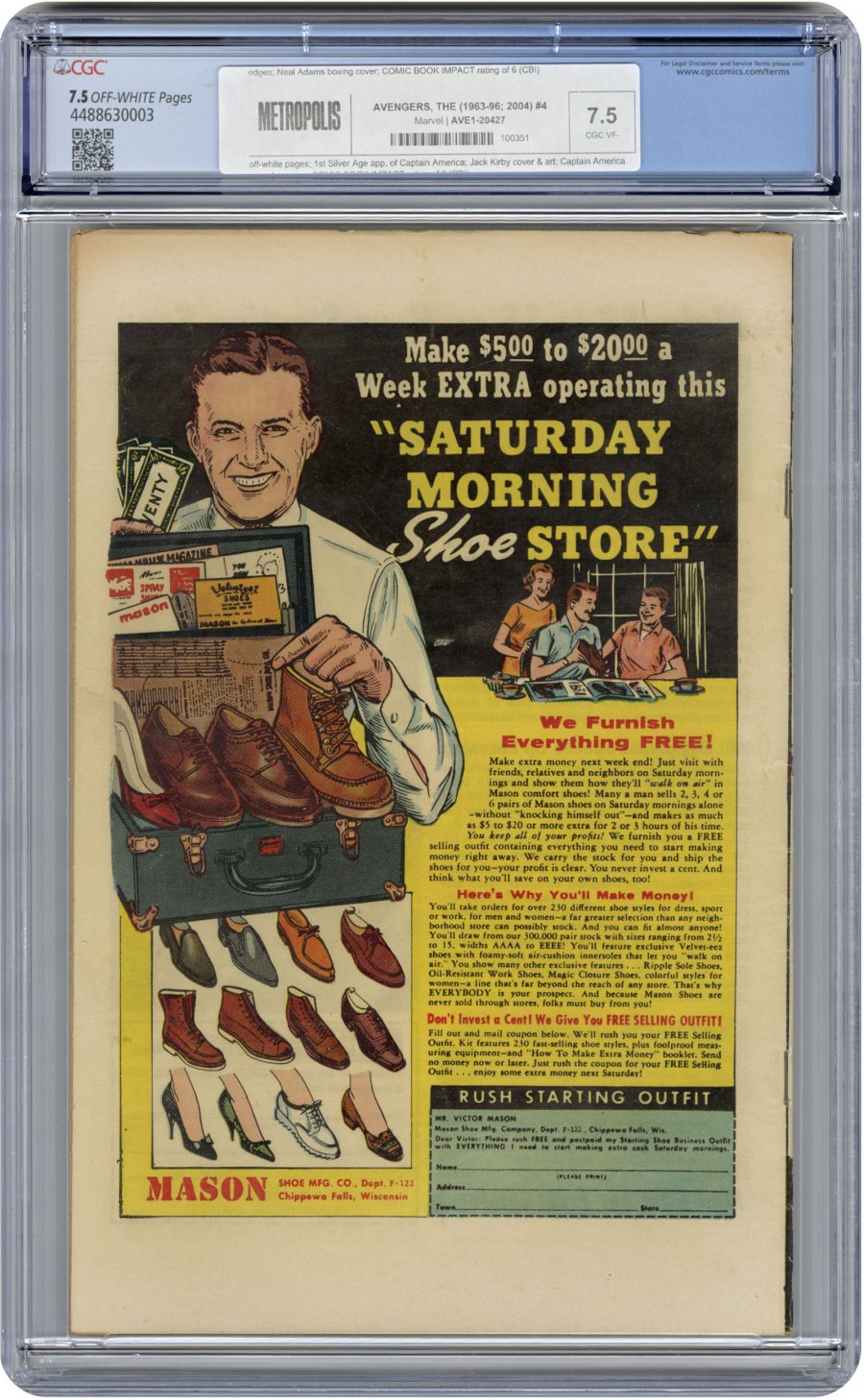 1st appearance of Captain America in the Silver Age; Jack Kirby cover & art; Captain America joins Avengers; COMIC BOOK IMPACT rating of 9 (CBI)